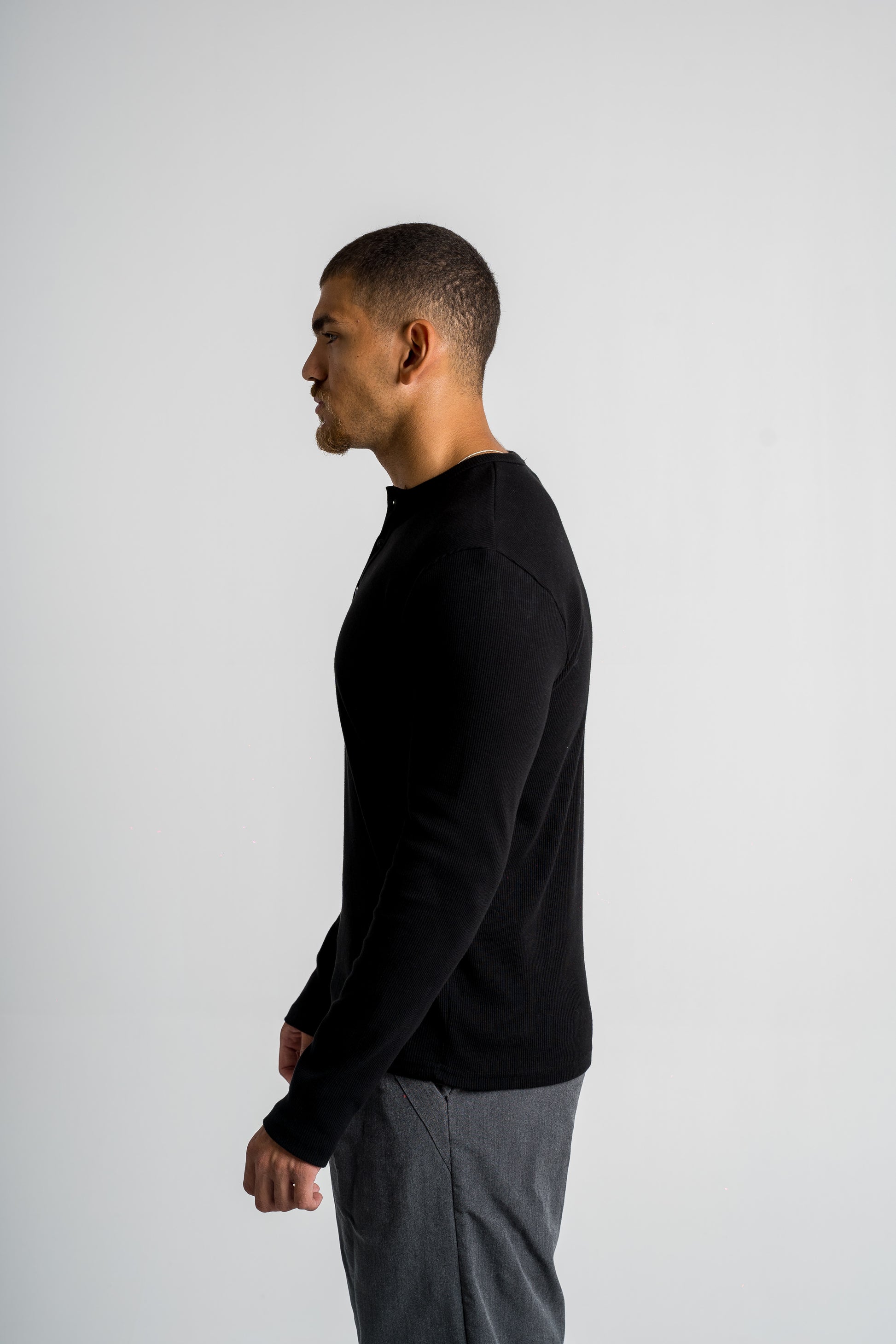 Our Long Sleeve Henley Shirt combines timeless style with a modern, tailored fit. Crafted from premium, breathable cotton, it delivers unbeatable comfort while maintaining a structured silhouette. The three-button placket and subtle detailing give it a refined yet relaxed look, perfect for dressing up or keeping it casual.