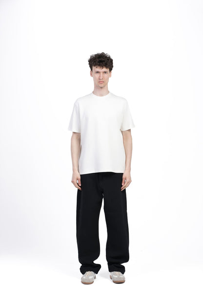 Regular fit. 100% heavyweight cotton. Slightly long to accommodate for shrinkage. Thick ribbed neckline.